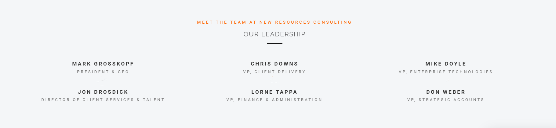 New Resources Consulting has been providing superior IT consulting solutions since 1992. In 2003, Mark Grosskopf took over as NRC’s President & CEO, and we recently celebrated our 20th anniversary under his leadership. We remain committed to our mission of improvement through technology. Due to NRC being industry agnostic, our experience allows us to pull solutions from various industries and apply them to meet your unique needs. Meet our leadership team below and discover the core values that drive us.